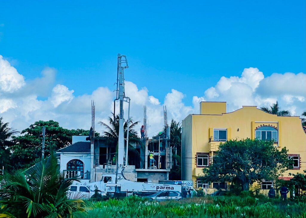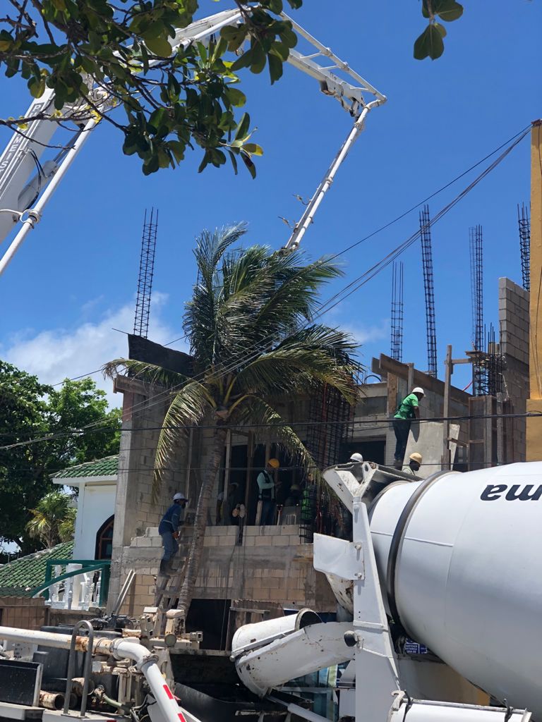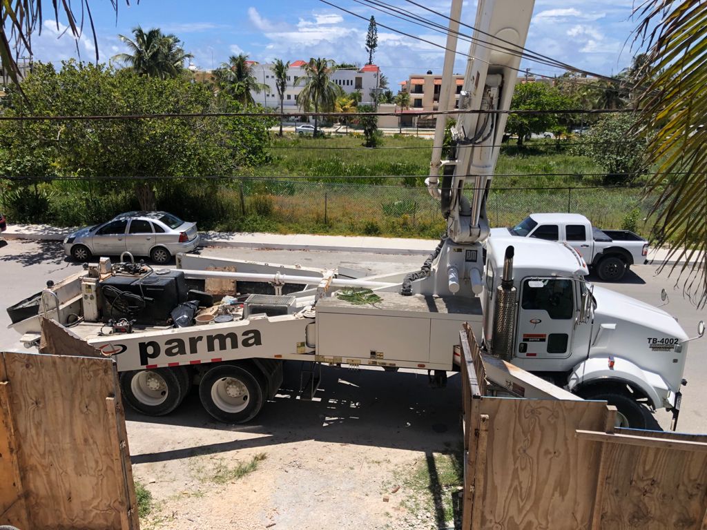 Today the concrete pumper truck was back and poured the concrete for the top floor!