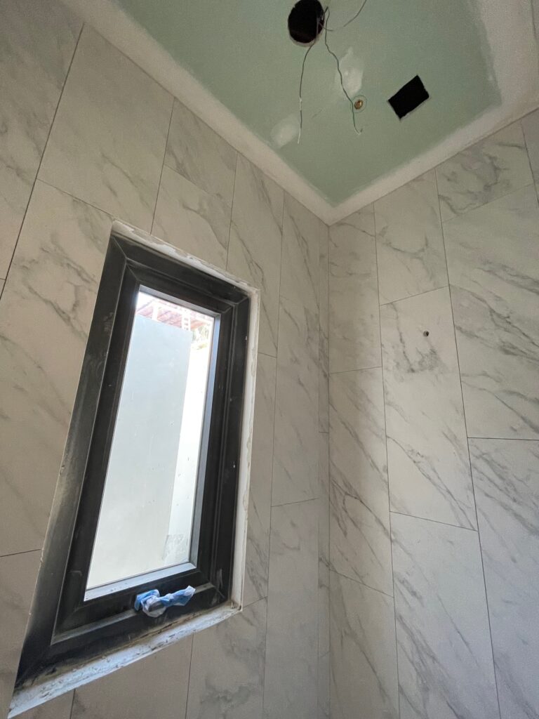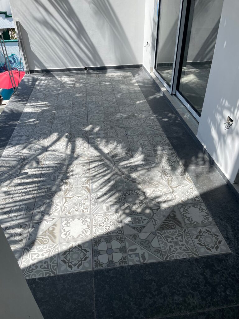 - Almost all of the tile is in, expect for a bit with the bathrooms