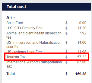 Part of the overall airline charge was the Mexican tourist tax, which was $57.22 for the two of us combined.