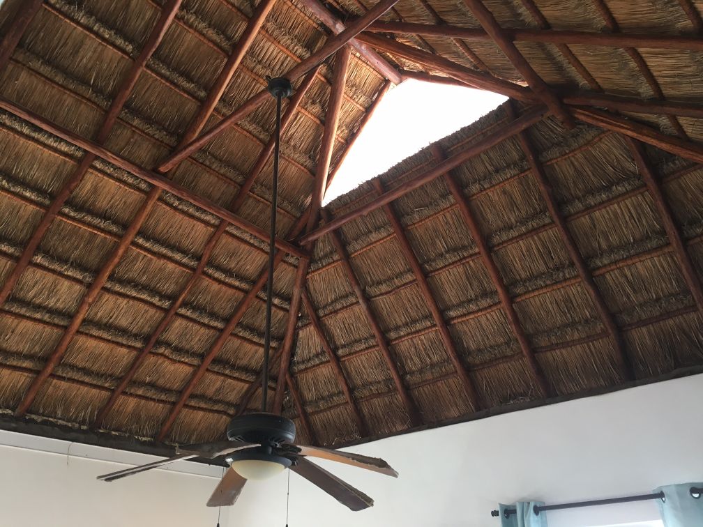 We were especially worried about our roof. Part of the inside of our house is covered by a palapa roof, including my office and the living room. The roof is past the end of its life expectancy (about 7 years), and already has some small holes in it. We were worried it would either tear off completely, or else leak in a major way.