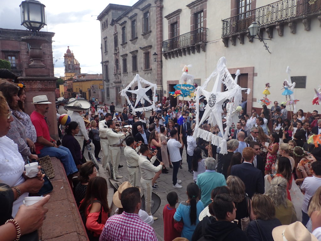 One afternoon there was a wedding, All of the guests paraded through the square. There were musicians, dancers, guys on stilts, puppets – it was quite a fiesta!